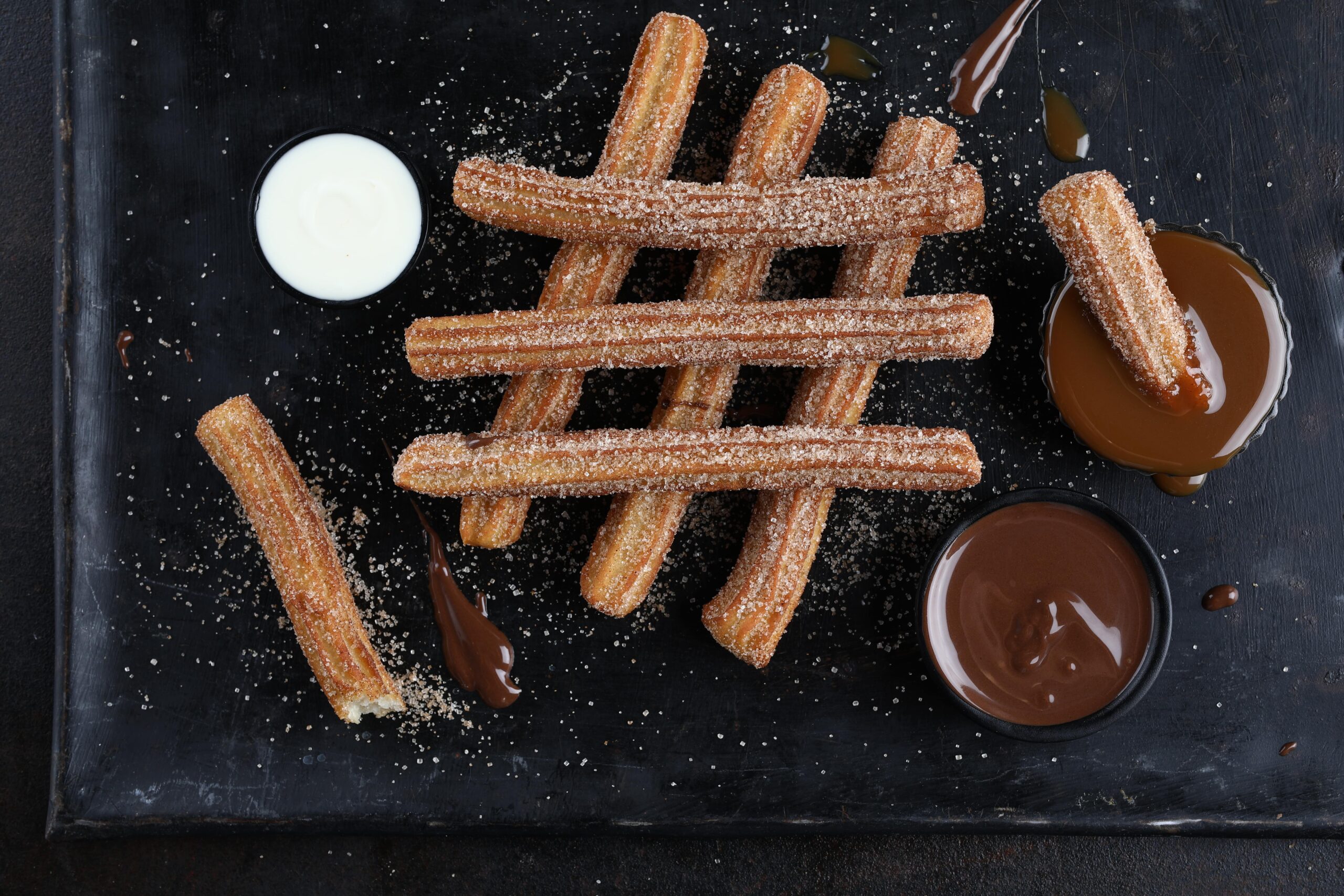 שש יחידות צ’ורוס בלווי רוטב חום אגוזים ולבן